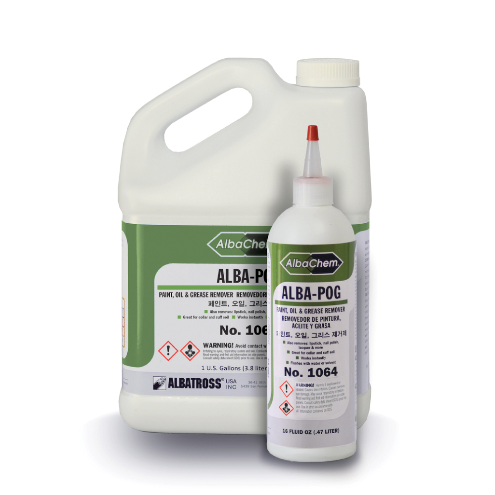 ALBA-POG es especialmente efectivo para remover manchas difíciles como grasa, pintura de aceite, carbono y otras manchas aceitosas de superficies de textiles.