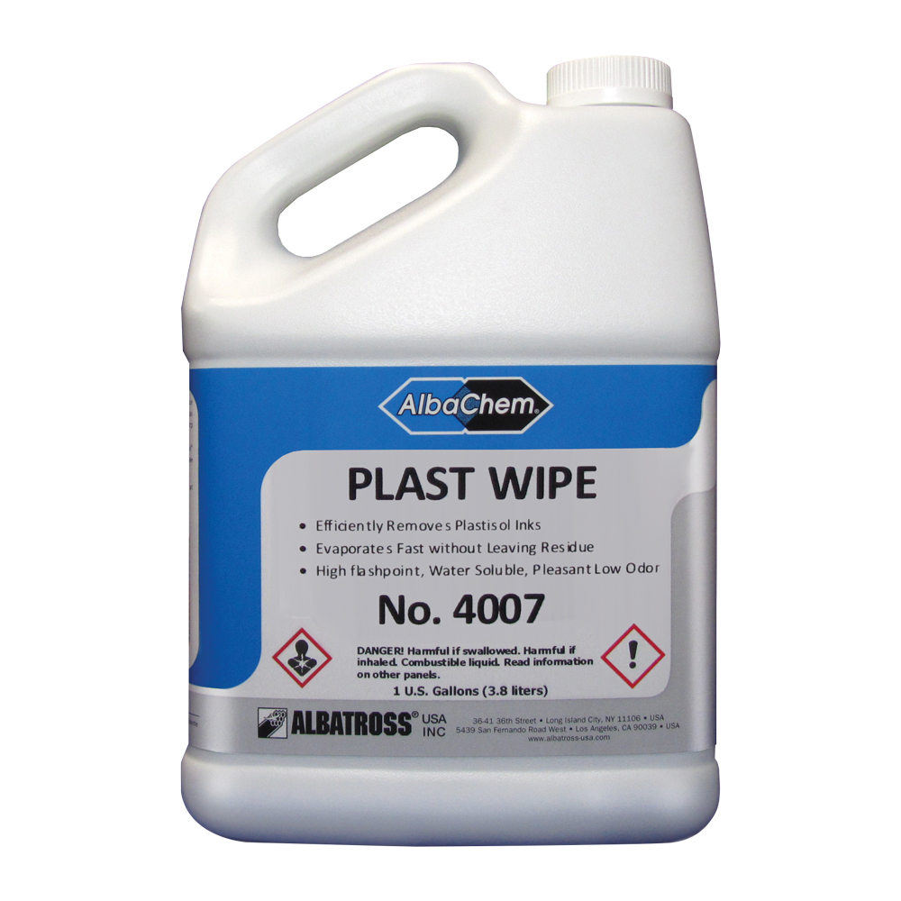 Plast Wipe es un limpiador de pantallas altamente efectivo, soluble en agua, para plastisol y otras tintas de serigrafía.