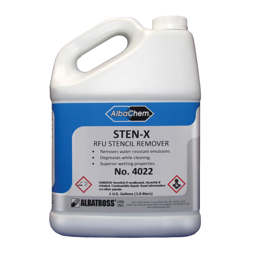 Es un removedor de emulsión "listo para usar". Sten-X descompone rápidamente emulsión para reclamación rápida y eficiente de mallas.