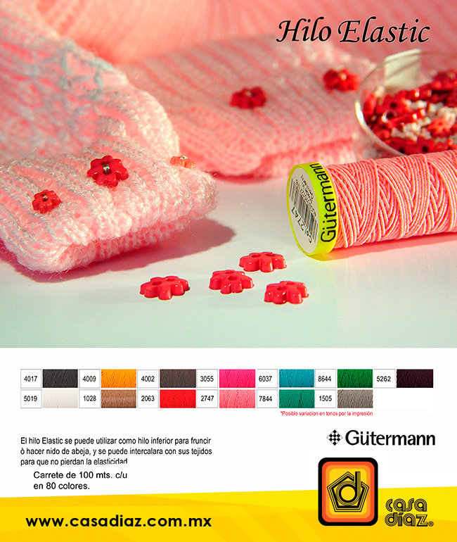 El hilo inferior se puede utilizar como hilo inferior para fruncir ó hacer nido de abeja y se puede intercalar con sus tejidos para que no pierdan elasticidad.