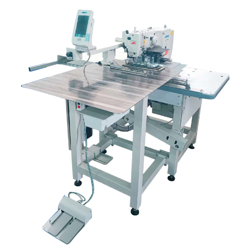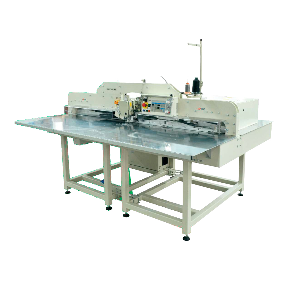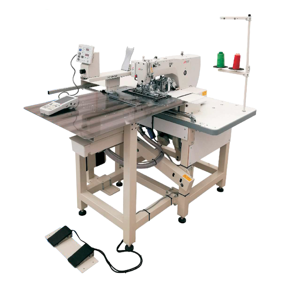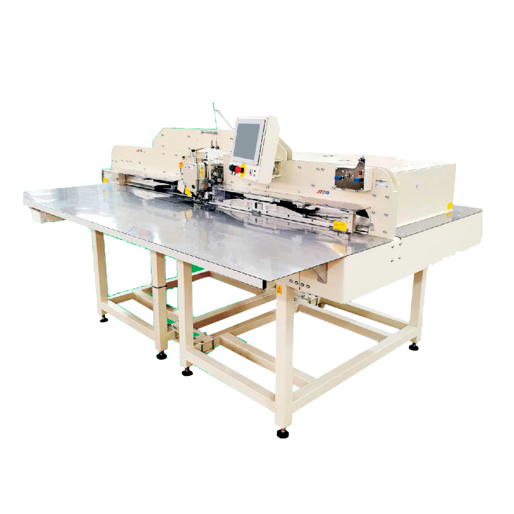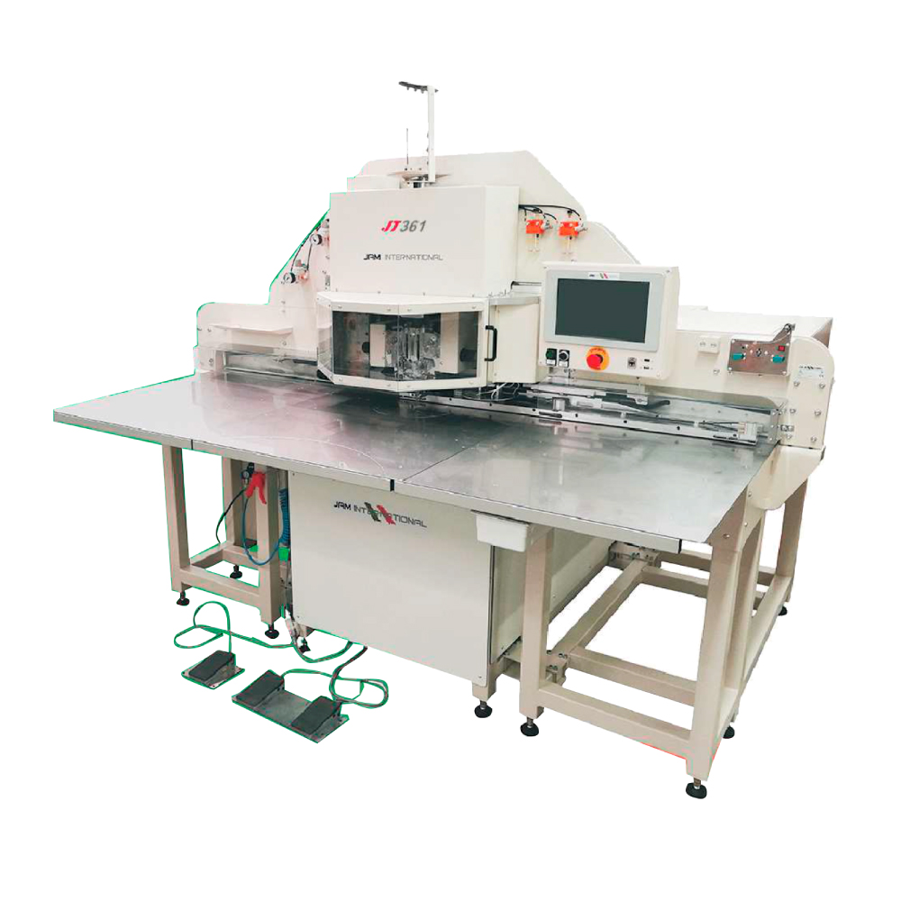 Máquina automática programable para realizar la costura de la “JOTA” en el pantalón. Una aguja, punto candado carga y apilamiento automáticos