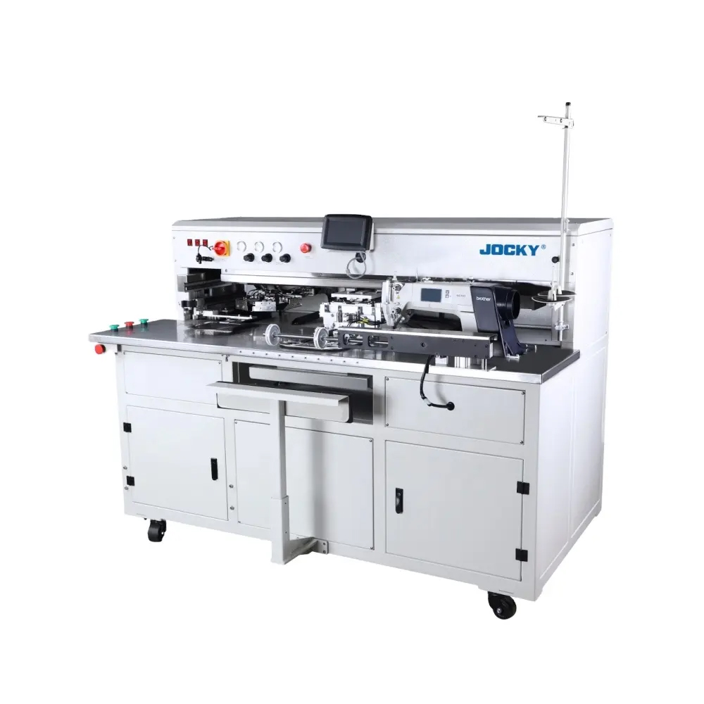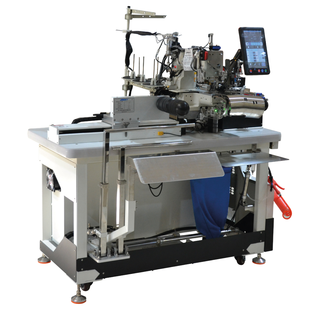 Máquina industrial de costura de prendas de vestir de alta eficiencia, para soldar con láser caliente bolsas, coser paletillas de playera tipo polo y coser vivos de pantalón.