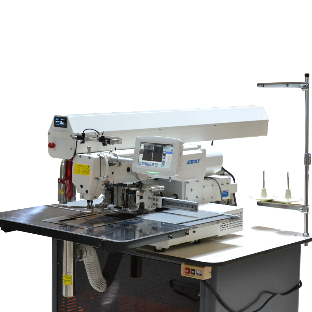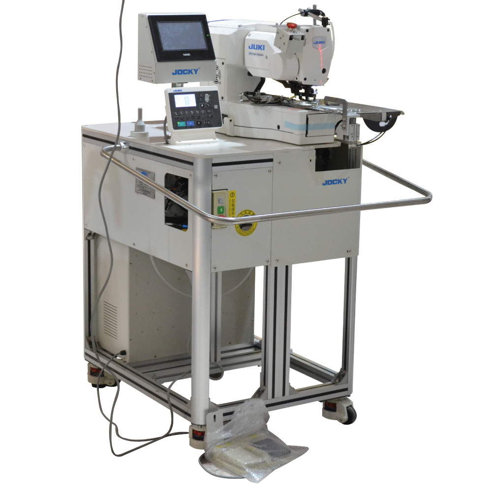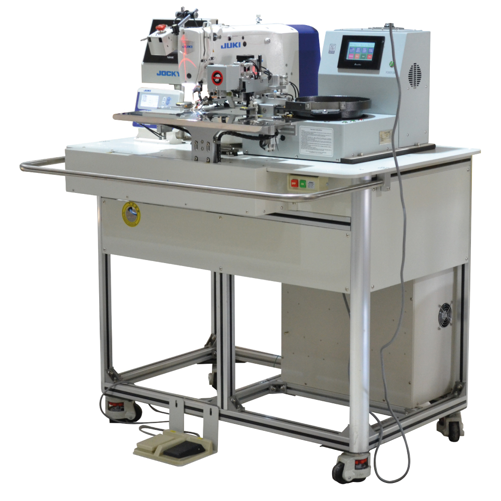 Esta máquina cose automáticamente los 3 ojales en la camisa polo; tiene un indexador, es decir, alimenta automáticamente la prenda, ajusta la distancia entre los ojales, incluso gira el clamp o sujetador de la playera y hace el primer ojal horizontal.