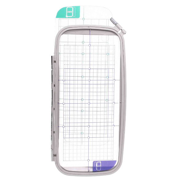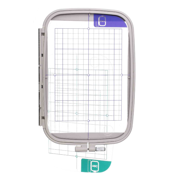 Super Hoop (dos etapas) ¡Ahorre tiempo y trabajo! Cree diseños extra grandes sin la necesidad de reubicar su tela. La conveniente función de reposicionamiento le permite mover la tela en forma de aro a una sección superpuesta adicional. Imagine combinar varios diseños pequeños para crear un diseño más grande sin necesidad de volver a enganchar.