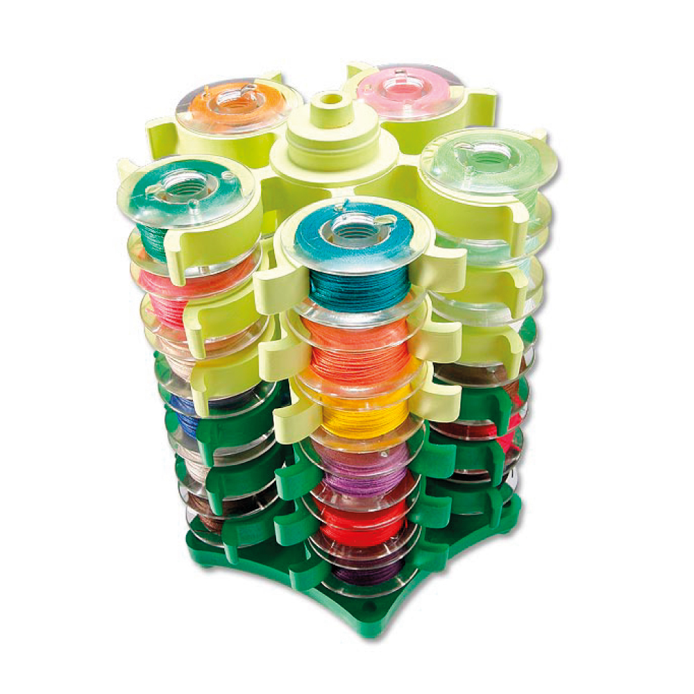 Guarda fácilmente los carretes de hilo con sus bobinas del mismo color.
