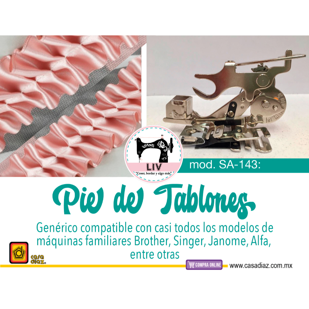 Este pie es genérico de la marca LIV compatible con casi todos los modelos de máquinas de coser familiares de diferentes marcas como Singer, Brother, Janome, Alfa, entre otras.