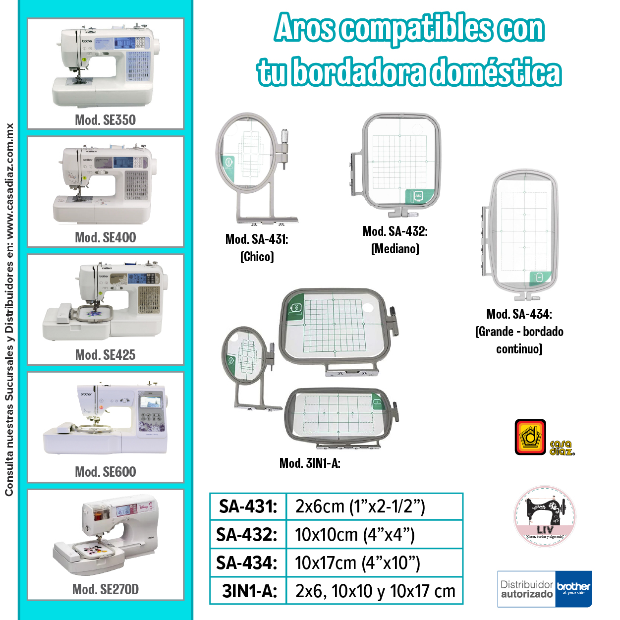 Aros compatibles con las bordadoras Brother SE350, SE400, SE425, SE600 y SE270D