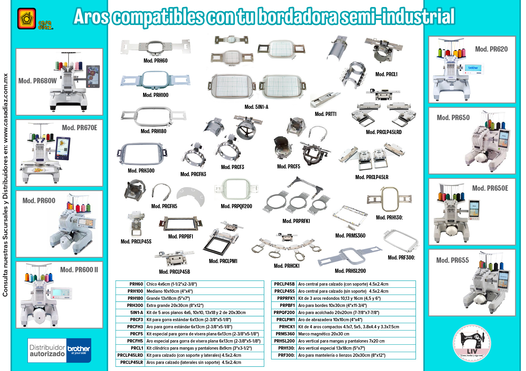 Aros compatibles con las bordadoras Brother PR680W, PR670E, PR600, PR600II, PR620, PR650, PR650E y PR655
