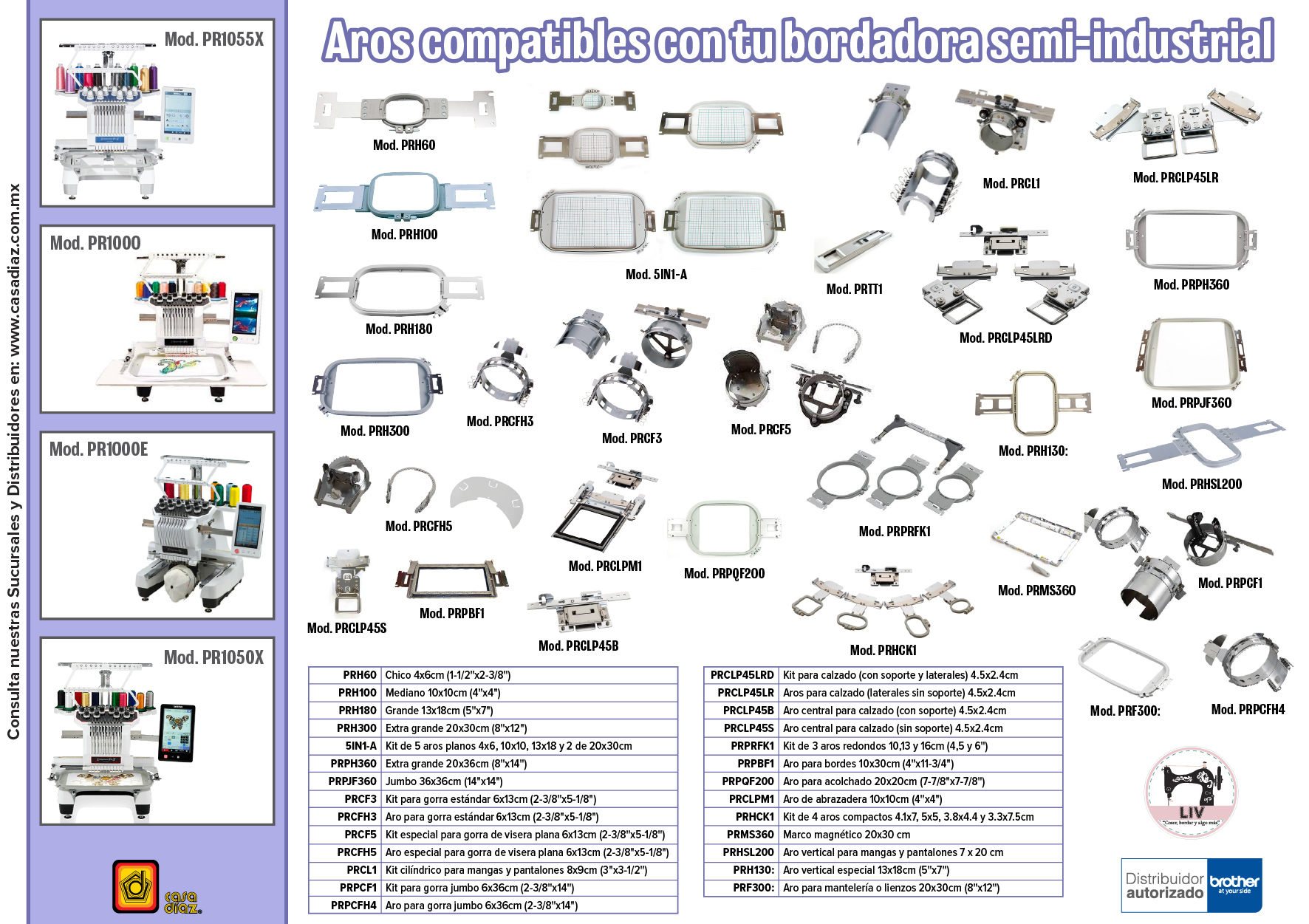 Aros compatibles con las bordadoras Brother PR1055X, PR1000, PR1000E y PR1050X
