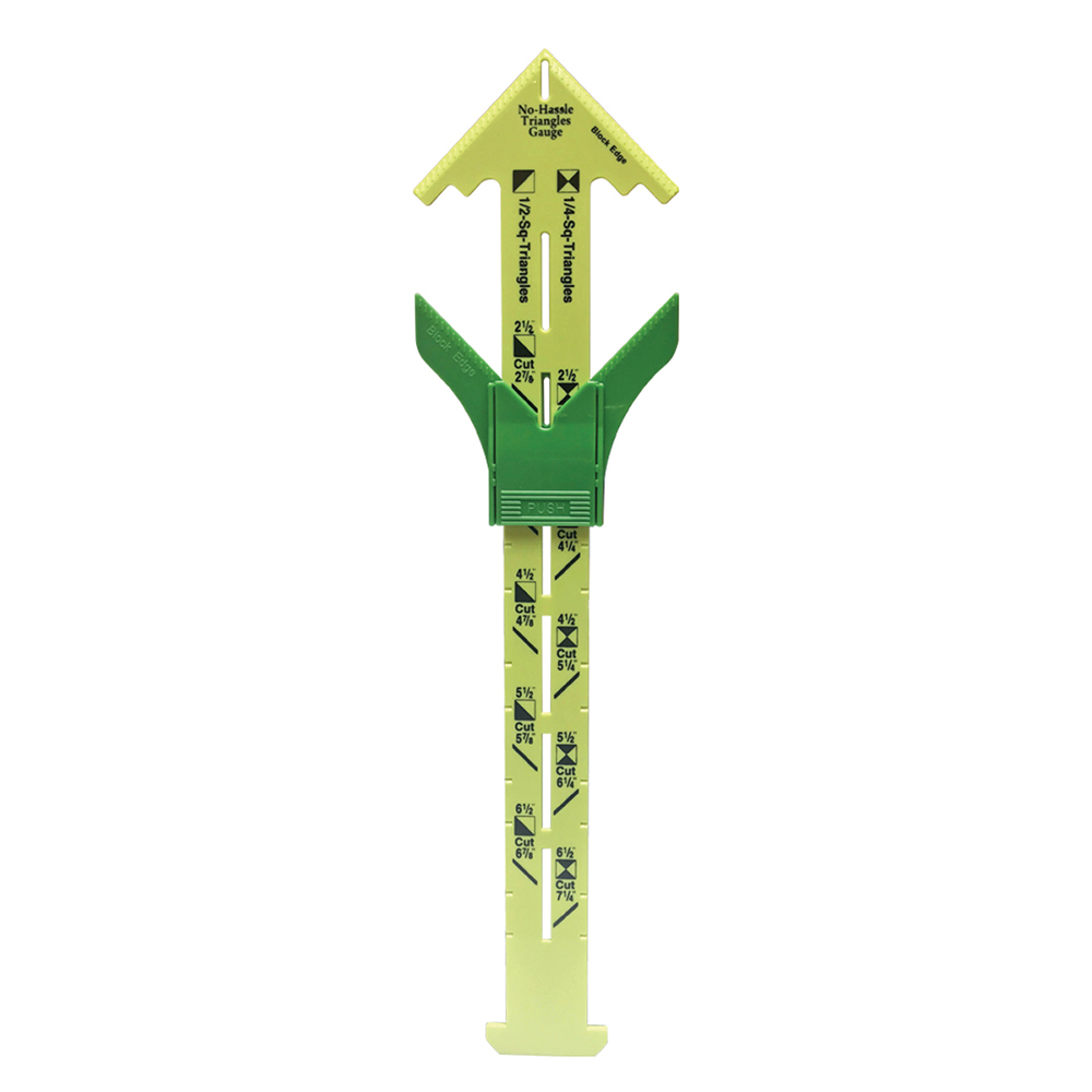 Indicador o guía de la marca LIV, especialmente diseñado para hacer cuadros de patchwork de 2 o 4 triángulos, esta guía te permite hacer cuadros de 5 tamaños diferentes y es muy fácil de usar.
