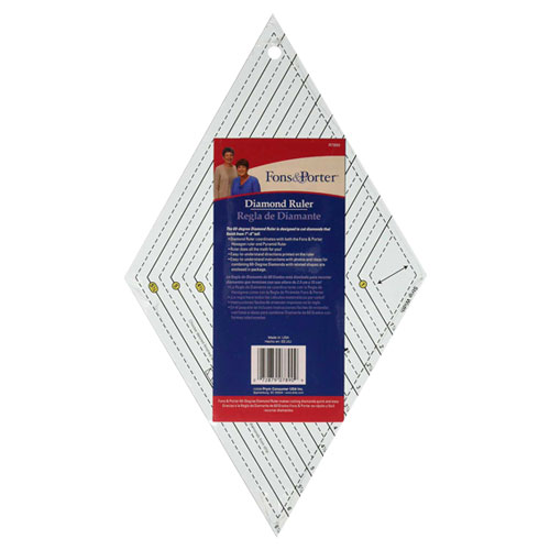 Esta regla especial para quilting, patchwork y manualidades te permite cortar diamantes con ángulos de 60º de 2.5 cm a 15 cm de altura, se puede combinar con las reglas hexagonales o piramidales para crear nuevas formas sin la necesidad de realizar cálculos para cortar las piezas.