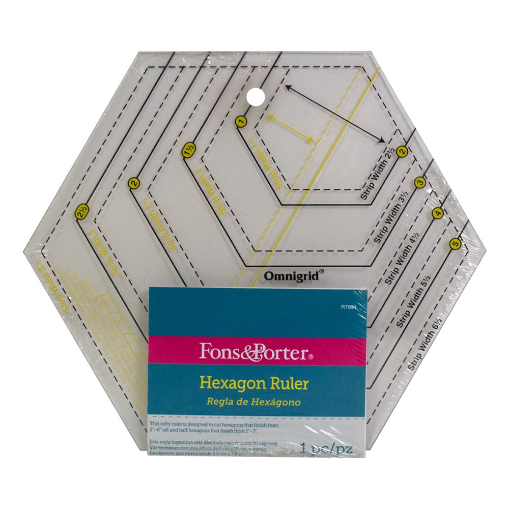 Regla de acrílico transparente en forma de Hexágono, para trabajos de quilting y patchwork.