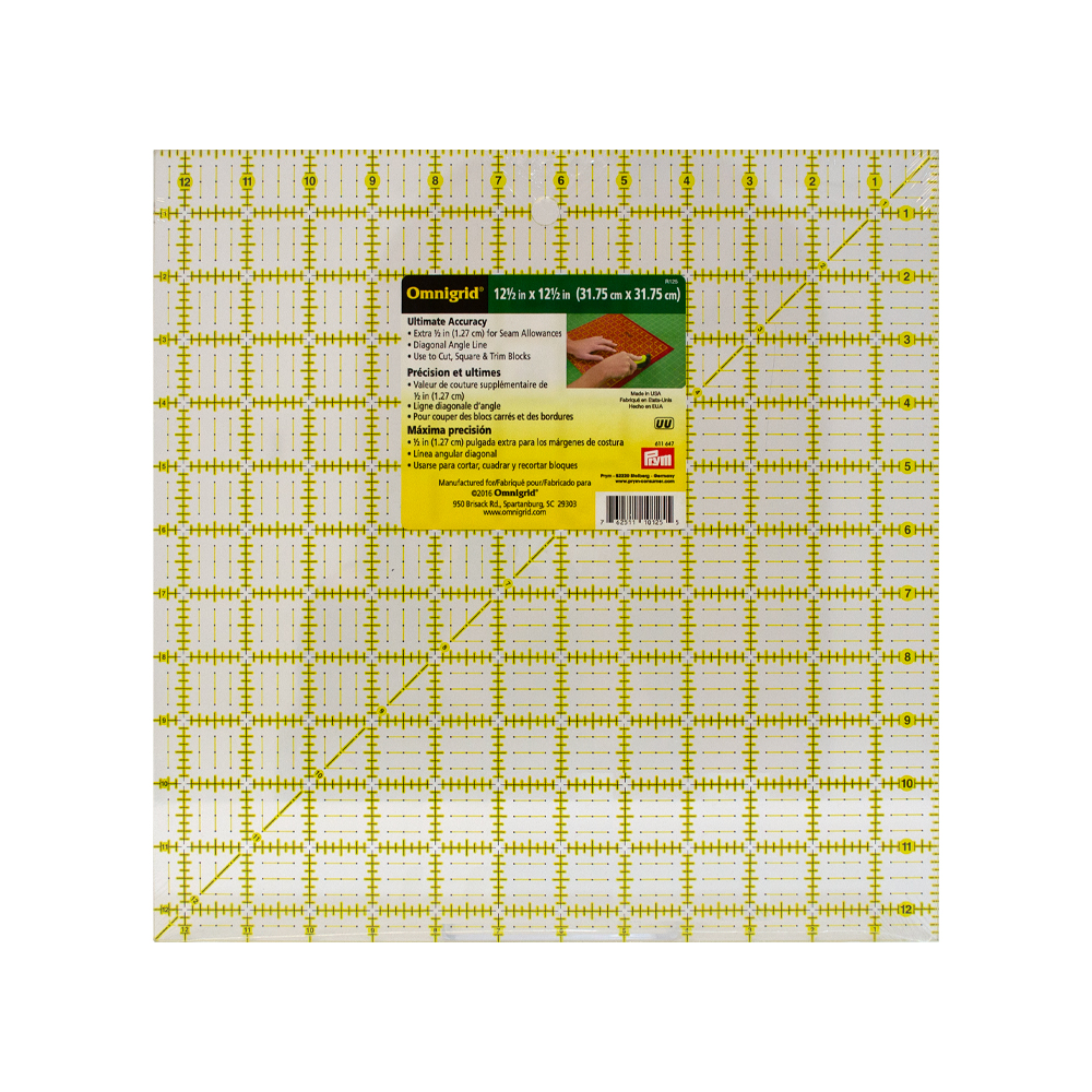 Regla de resistente acrílico transparente de 12½ x 12½ pulgadas (31.75 cm x 31.75 cm), ideal para trabajos de quilting y patchwork.