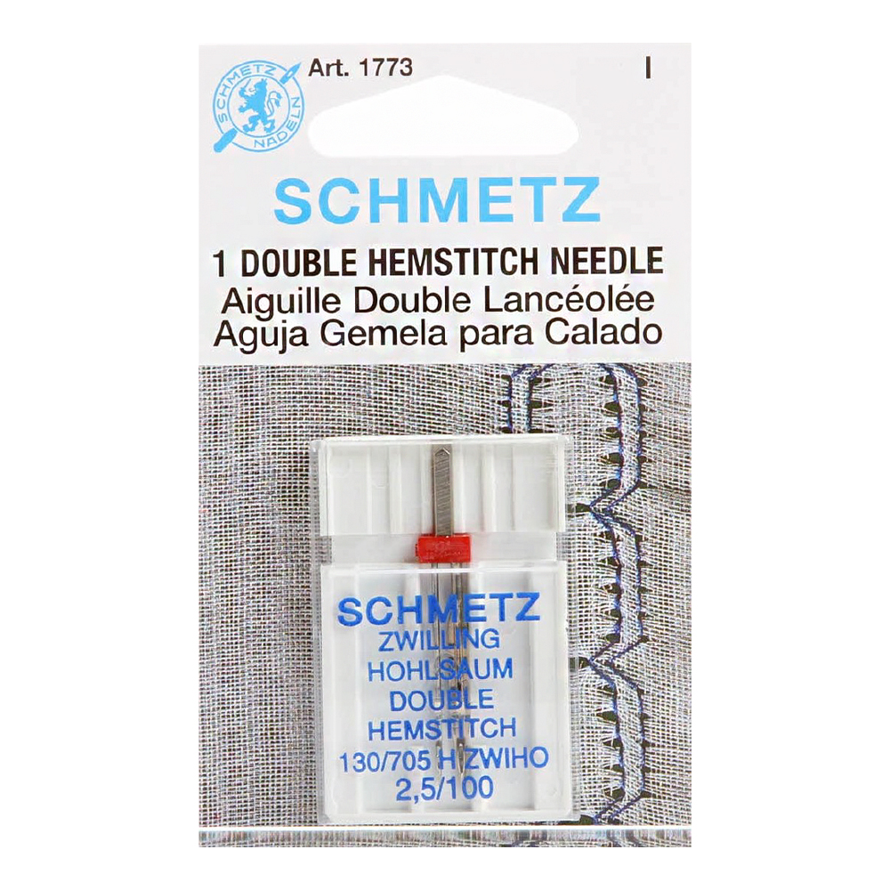 Aguja gemela para bordado en máquina doméstica, es ideal para usar hilos de bordar, ya que el rebaje es especial y el "ojo" es más amplio.